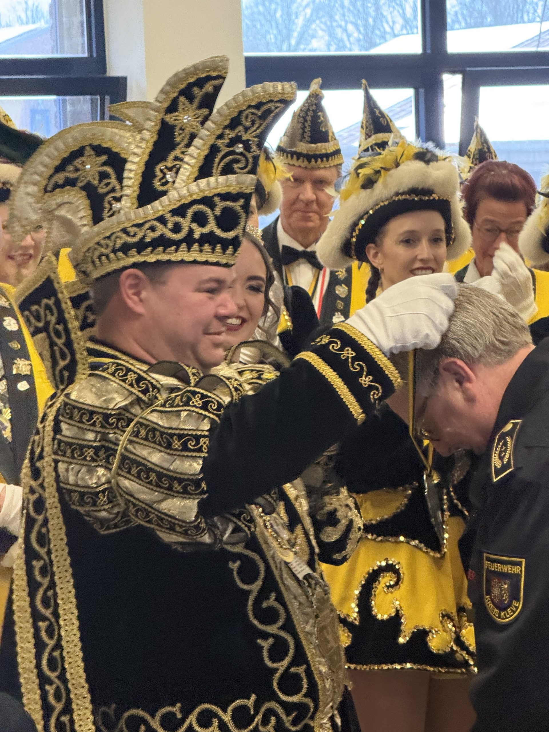 Überraschungsgast war das Prinzenpaar der Stadt Goch, Sebastian I und Mareike III. , die das ehrenamtliche Engagement der Feuerwehren im Kreis Kleve betonten. Das Highlight war der Auftritt der Tanzgarde und die Ehrung von Reiner Gilles und Christian Unger mit dem Prinzenorden. Reiner Gilles für seine Tätigkeit als Kreisbrandmeister und Christian Unger für sein langjähriges Engagement im Bereich der Sprechfunkerausbildung. Ein großer Dank gilt auch den zahlreichen Helferinnen und Helfern im Hintergrund für die gelungene Vorbereitung.